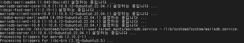 패키지 인덱스 업데이트가 완료되면, 다음 명령을 입력하여 MariaDB 서버 패키지를 설치합니다.