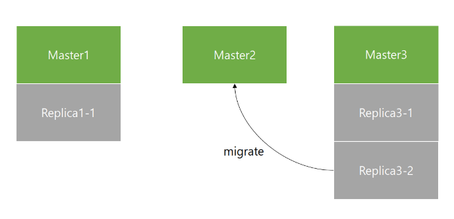 아래 그림에서 Master2는 Replica가 없으므로, Replica가 두 개 있는 Master3로부터 하나의 Replica를 migration 할 수 있습니다.